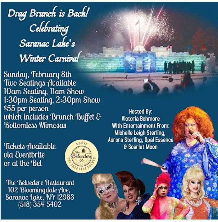 Join us on Sunday, February 8th at the Belvedere Restaurant for our 2026 Winter Carnival Drag Brunch